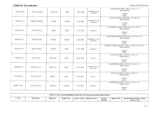2026 YILI MEVSİMLİK İŞÇİ SINAVI HK. (NİHAİ LİSTE 1)