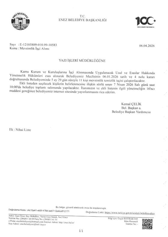 2026 YILI MEVSİMLİK İŞÇİ SINAVI HK.