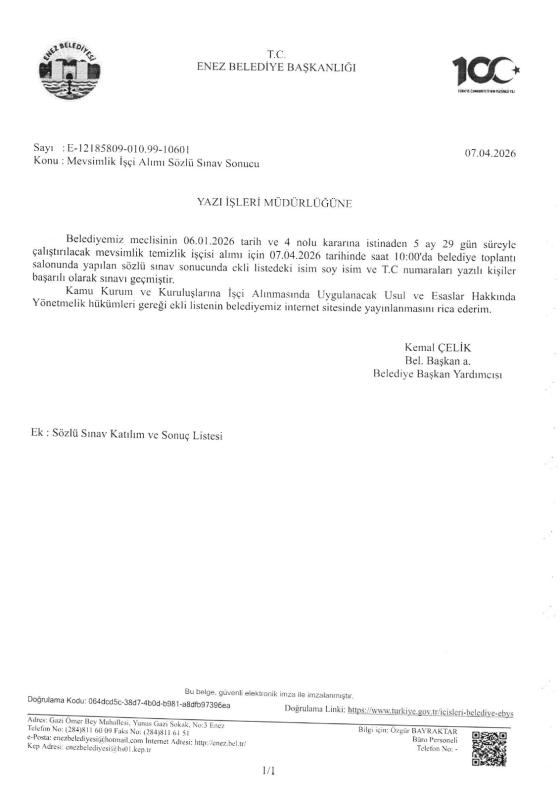 MEVSİMLİK İŞÇİ ALIMI SÖZLÜ SINAV SONUCU